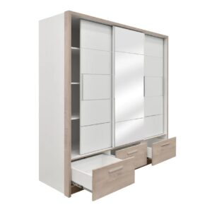 Συρόμενη ντουλάπα με 3 συρτάρια LARA 150 premium δρυς/ λευκό 149x62x220