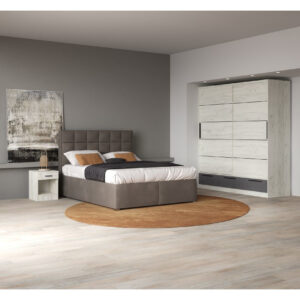 Συρόμενη ντουλάπα βαρέως τύπου AP 230εκ. σε μοντέρνο συνδυασμό άσπρο δρύς τουπάγου με ανθρακί χρώμα. Στο δεξί μέρος έχει ένα εσωτερικό πατάρι και σωλήνα γιακρέμαση, ενώ στο αριστερό τμήμα της παρέχει ένα εσωτερικό πατάρι, σωλήνα γιακρέμαση, τέσσερα επίπεδα ράφια και δύο εσωτερικά συρτάρια με τηλεσκοπικούςμηχανισμούς κίνησης. Δυνατότητα προσαρμογής εξωτερικούκαθρέφτη στην πόρτα. Κατασκευάζεται από υψηλής ποιότητας…