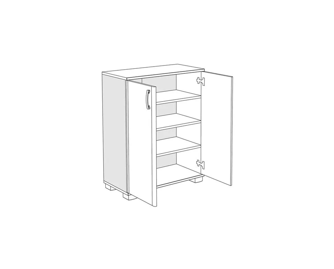 Έχει τρία ρυθμιζόμενα ράφια. Κατασκευάζεται από υψηλής ποιότητας και πυκνότητας μοριοσανίδα ( μελαμίνη ) πάχους 18 mm, των ευρωπαίων παραγωγών EGGER, KRONOSPAN. Με πιστοποιημένους και εγγυημένους μηχανισμούς των ευρωπαϊκών οίκων INCOLL , HETTICH , TITUS. Μεταλλικά χερουλάκια – πόμολα του ευρωπαϊκού οίκου RUJZDESIGN. Τελείωμα ABS σόκορο.
