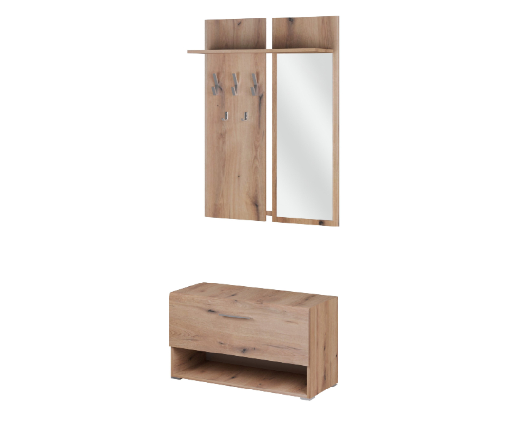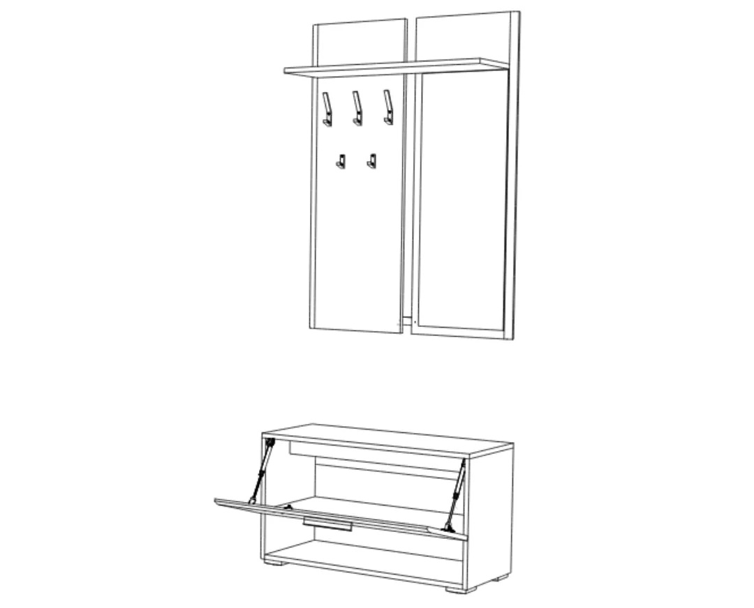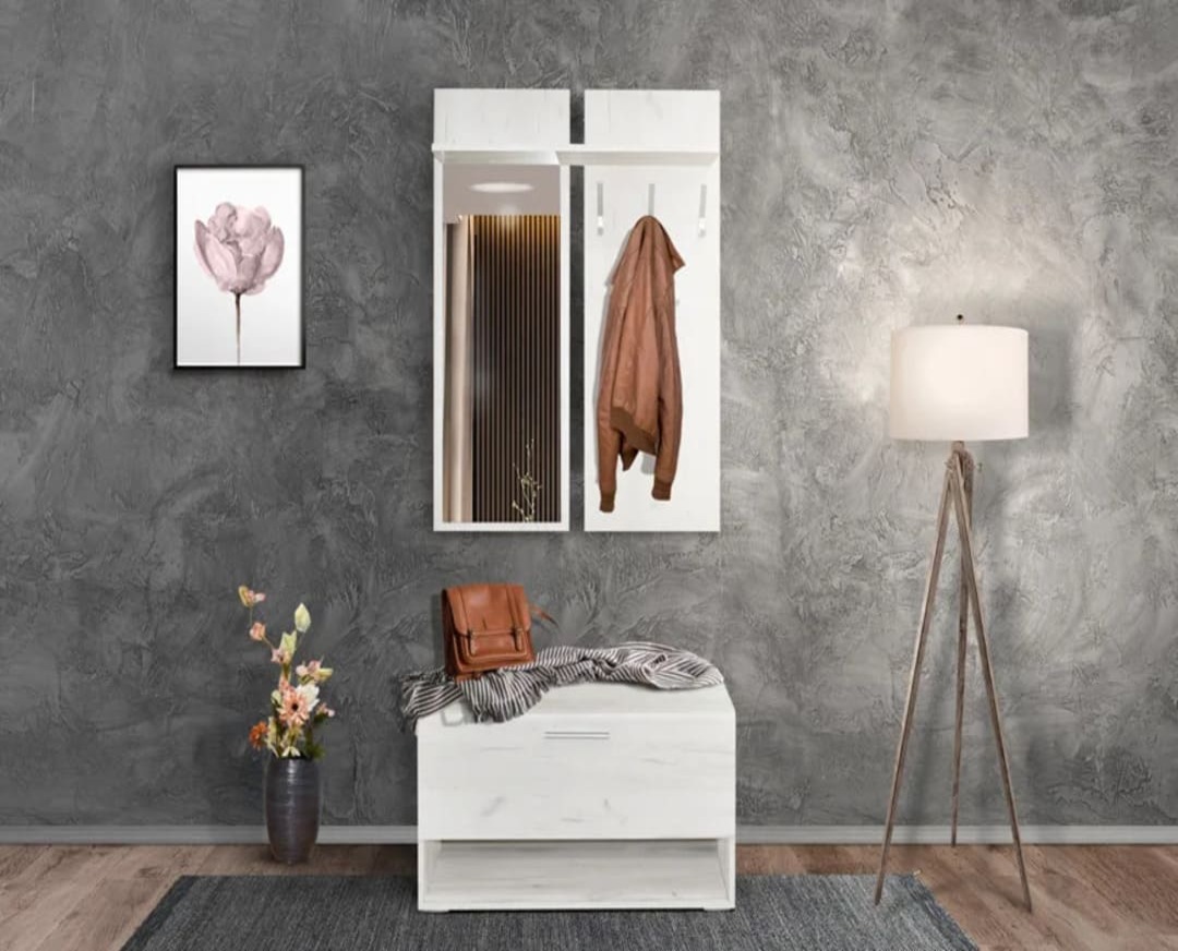 Έπιπλο εισόδου, παπουτσοθήκη με επιτοίχια κρεμάστρα και καθρέφτη.