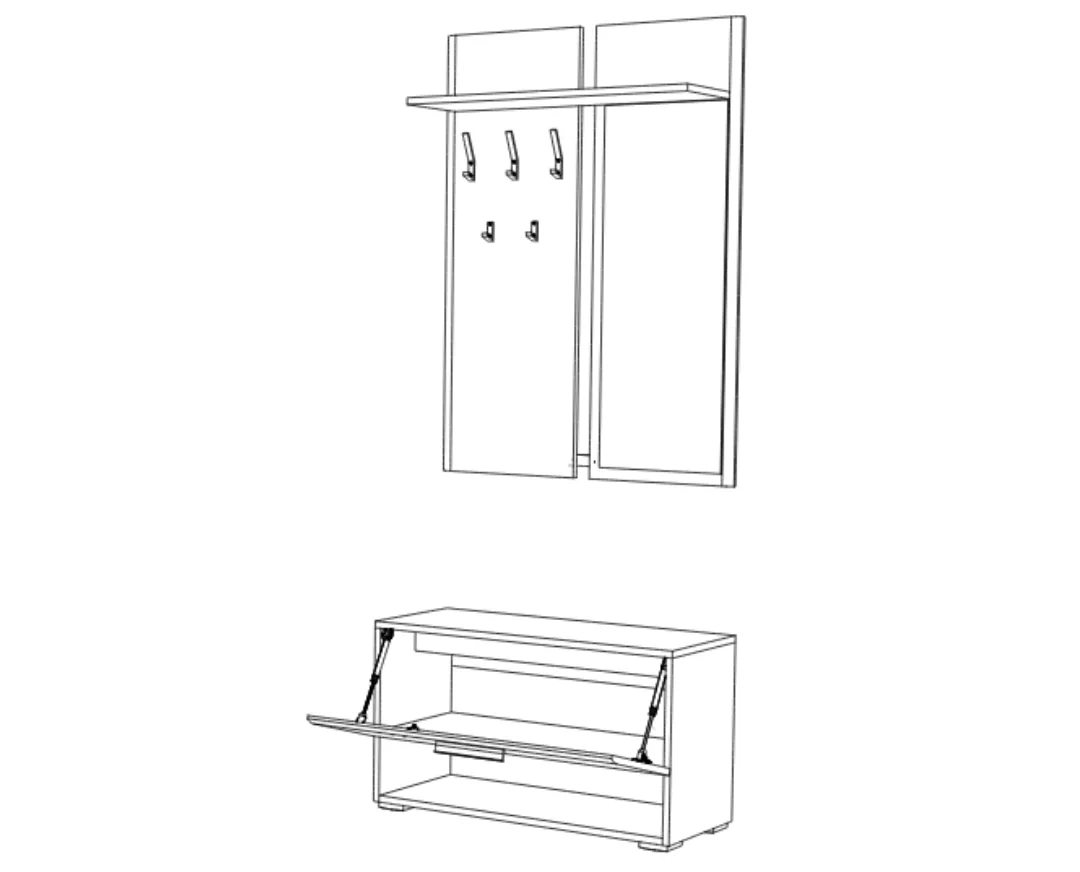 Έπιπλο εισόδου, παπουτσοθήκη μεεπιτοίχια κρεμάστρα και καθρέφτη.