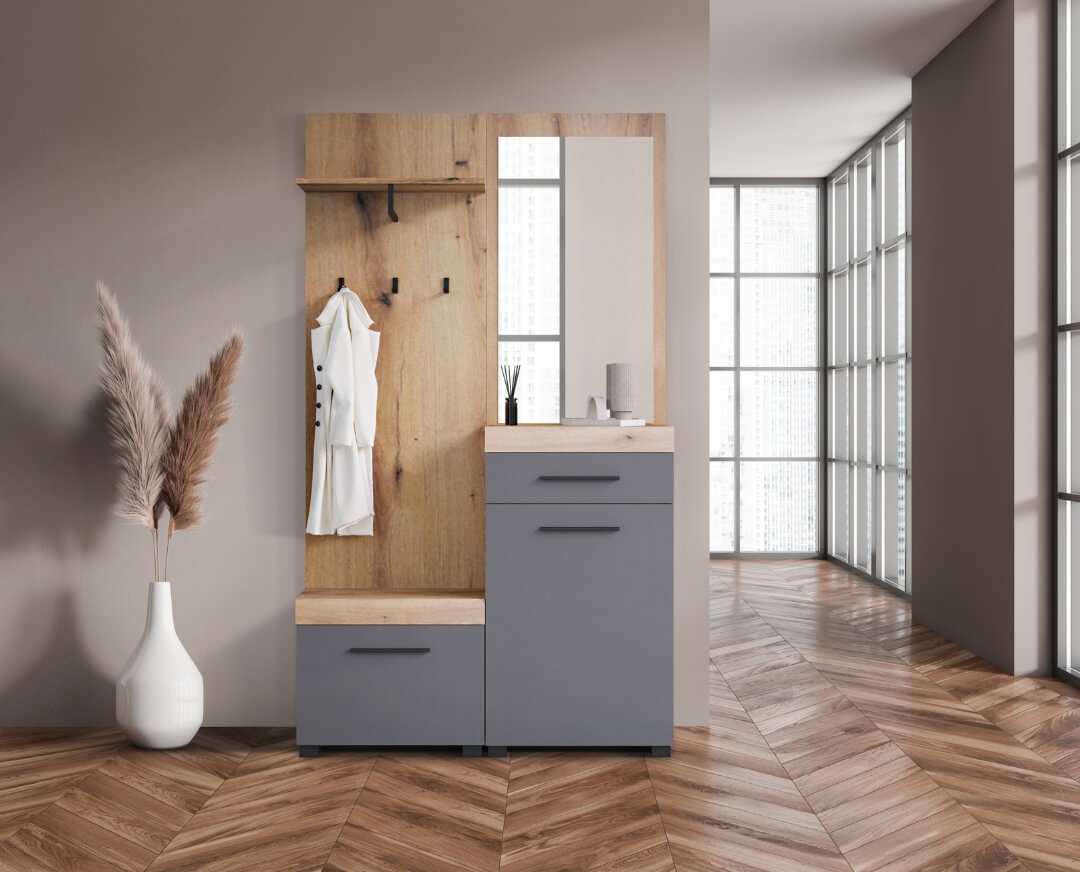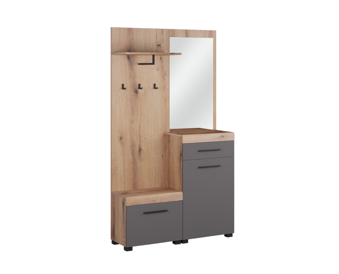 Έπιπλο εισόδου με καθρέφτη GENOVA artisan/ γκρι 120x38x209