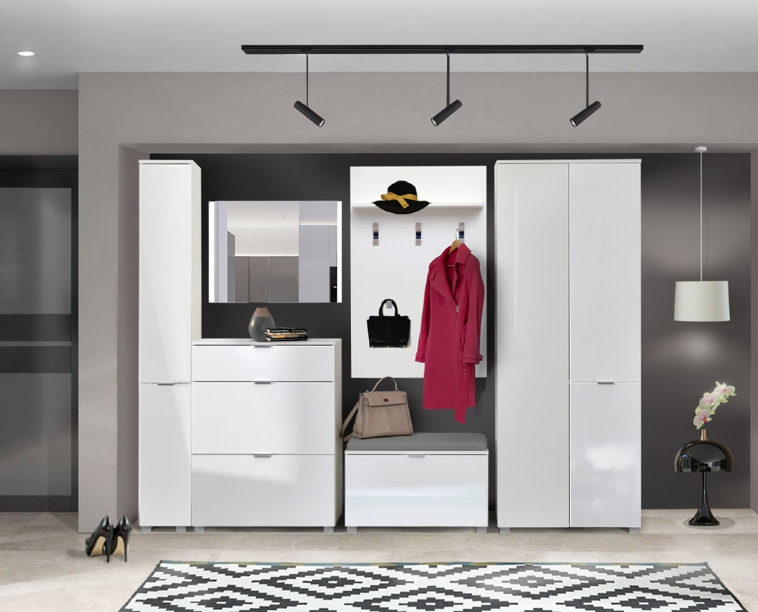Ντουλάπα εισόδου με καθρέφτη ELEGANCE 80ο λευκό γυαλιστερό 80x38x208,5