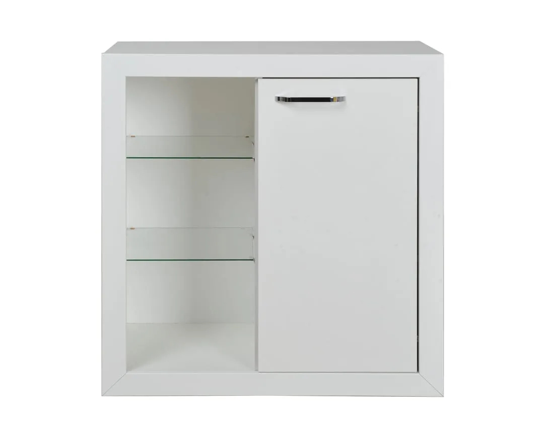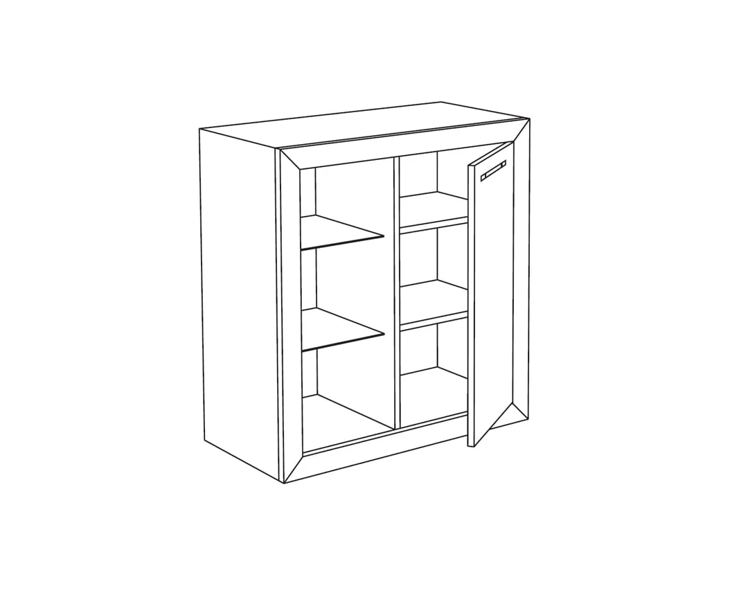 Κομότα – μπουφές επιδαπέδια, με 1 πόρτα, ραφιέρα ανοιχτού τύπου, 2 εσωτερικά ράφια, 3 επίπεδα αποθήκευσης. Περιμετρική κορνίζα από ΜΑΣΙΦ ξύλο οξυάς. Κατασκευάζεται από υψηλής ποιότητας και πυκνότητας μοριοσανίδα (μελαμίνη) πάχους 18mm, των ευρωπαίων παραγωγών EGGER, KRONOSPAN. Μεταλλικά χερουλάκια του ευρωπαϊκού οίκου Rujzdesign. Επιλογή ποιότητας, οικονομική λύση, μοντέρνος σχεδιασμός, άμεση παράδοση.