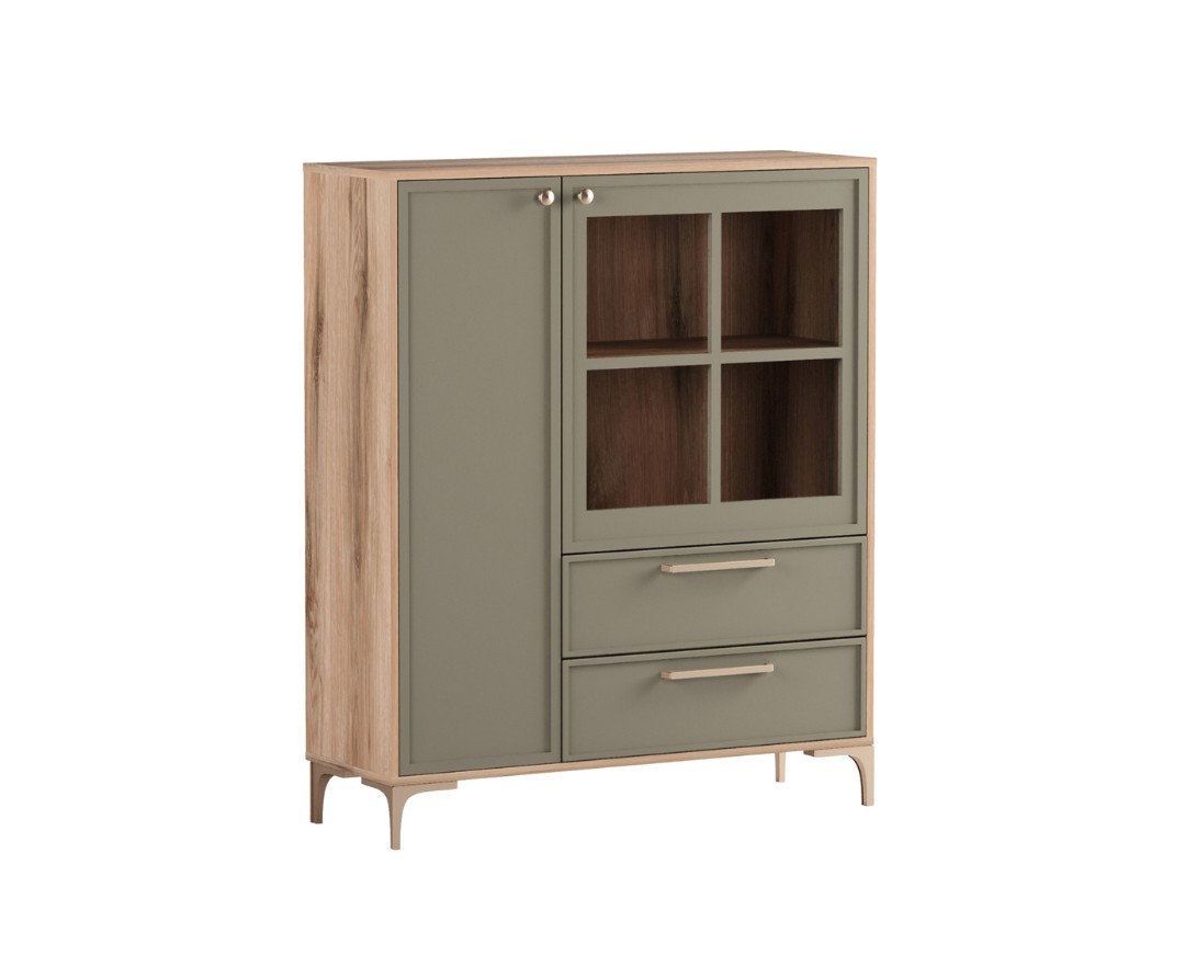 Βιτρίνα χαμηλή ALBA κανέλα/ ελιά 102,5×35,5×125