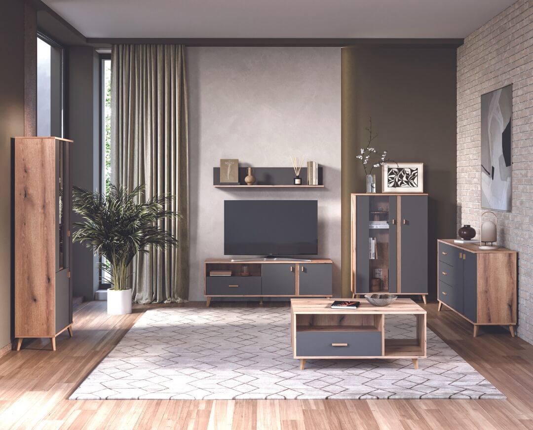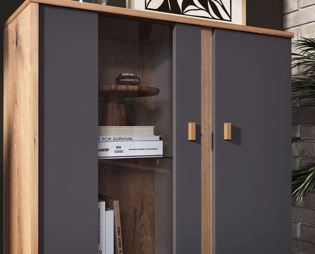 Βιτρίνα χαμηλή PORTO artisan/ γκρι 90,2x35x132,9