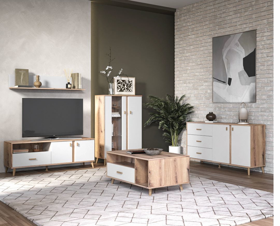 Βιτρίνα χαμηλή PORTO artisan/ λευκό 90,2x35x132,9