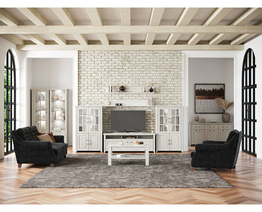 Βιβλιοθήκη, βιτρίνα ανοικτού τύπου για σύνθεση τηλεόρασης Rustic, διαχρονικής αισθητικής. Κορνίζα από μασίφ ξύλο οξιάς. Μεταλλικά χερουλάκια Rustic.