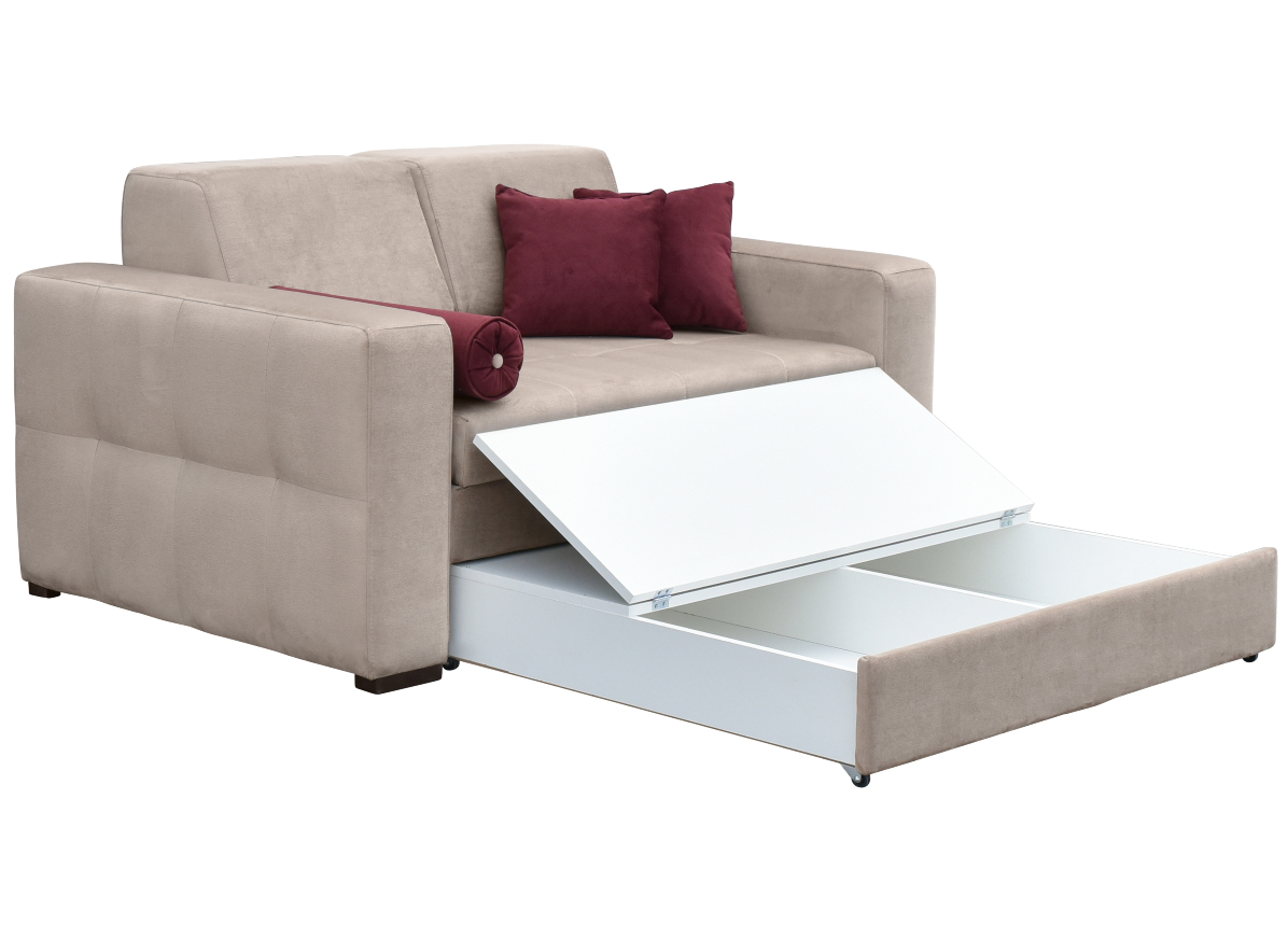 Διθέσιος καναπές με κρεβάτι ημίδιπλο 120*195εκ και αποθηκευτικό χώρο. Πυρήνας από αφρό sky cell, μεσαίας σκληρότητας. Ενδείκνυται για καθημερινό ύπνο. Τραβώντας το τροχήλατο συρτάρι, σηκώνουμε το αναδιπλούμενο στρώμα της έδρας και δημιουργείται διπλό κρεβάτι, ενώ κάτω από το καπάκι του συρταριού σας παρέχει αποθηκευτικό χώρο. Εύκολη μετατροπή σε κρεβάτι και αντίστροφα σε καναπέ με 3 κινήσεις. Ενδείκνυται για χώρους εκμετάλλευσης λόγω της άριστης ποιότητας κατασκευής, λειτουργικότητας, αισθητική και τιμής.