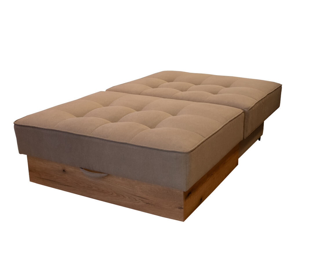 Διθέσιος καναπές κρεβάτι με αποθήκευση. Το στρώμα του είναι κατασκευασμένο από ελατήρια Bonnell και ενδείκνυται για καθημερινό ύπνο. Ο σκελετός είναι κατασκευασμένος από μασίφ ξύλο οξιάς για μεγαλύτερη αντοχή. Παράγεται σε δύο διαστάσεις, πολυθρόνα και διθέσιος καθώς και σε περιπτώσεις Ho.Re.Ca και σε τριθέσιο. Το κρεβάτι είναι διάστασης 120*190εκ.