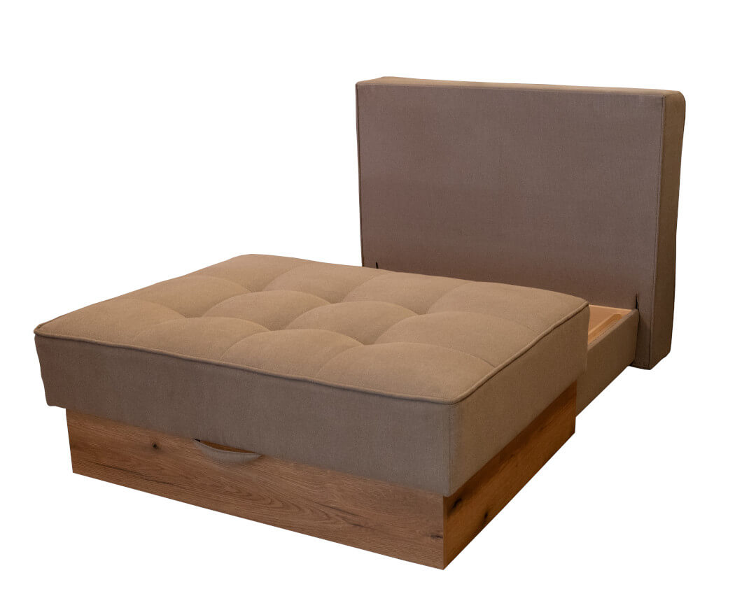 Διθέσιος καναπές κρεβάτι με αποθήκευση. Το στρώμα του είναι κατασκευασμένο από ελατήρια Bonnell και ενδείκνυται για καθημερινό ύπνο. Ο σκελετός είναι κατασκευασμένος από μασίφ ξύλο οξιάς για μεγαλύτερη αντοχή. Παράγεται σε δύο διαστάσεις, πολυθρόνα και διθέσιος καθώς και σε περιπτώσεις Ho.Re.Ca και σε τριθέσιο. Το κρεβάτι είναι διάστασης 120*190εκ.