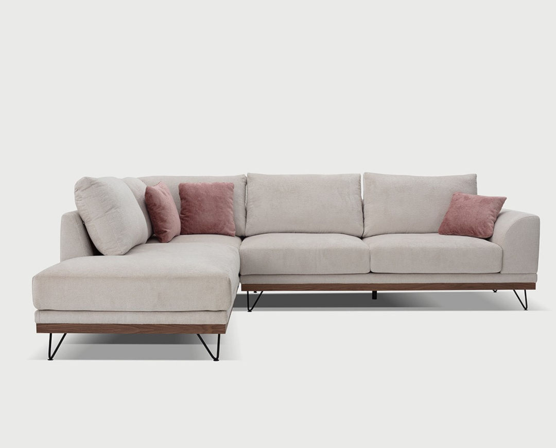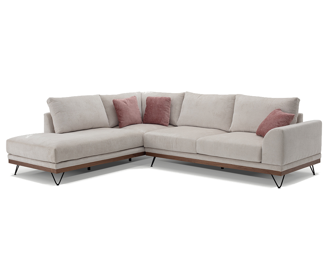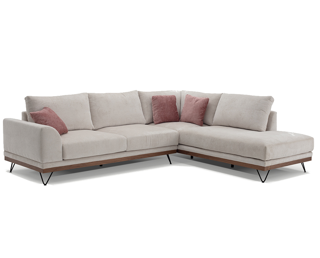 Γωνιακός καναπές VM- RENE με ξύλινη μπάζα, αποσπώμενα- πλενόμενα καλύμματα έδρας και πλάτης 290x240x98