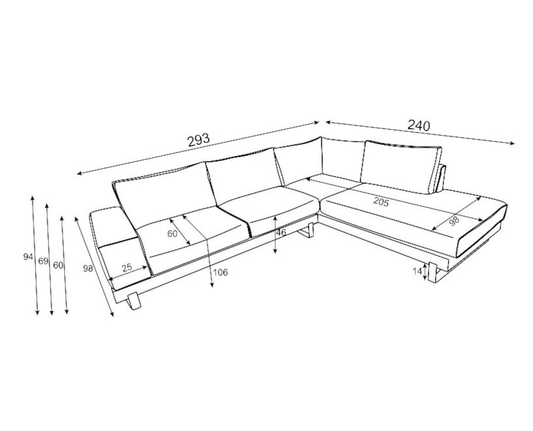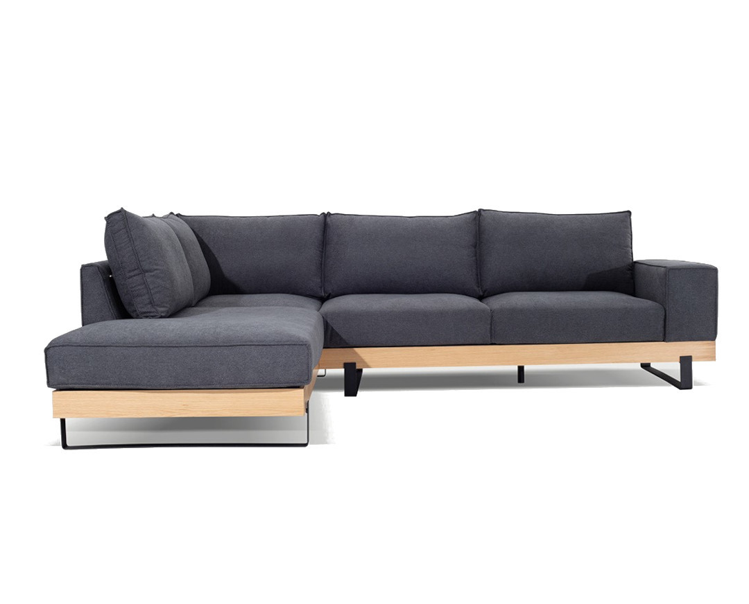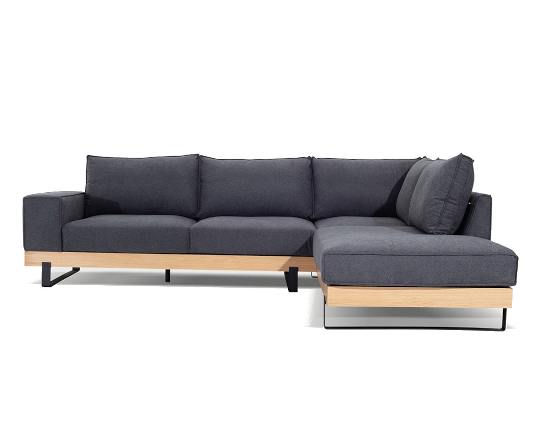 Γωνιακός καναπές VM- SIMBA με ξύλινη μπάζα, αποσπώμενα- πλενόμενα καλύμματα έδρας και πλάτης 293x240x98