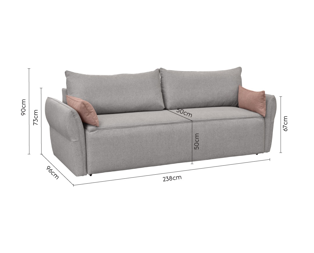 Τριθέσιος καναπές κρεβάτι με ανεξάρτητα ελατήρια και αποθήκευση Lagos γκρι 238x96x90