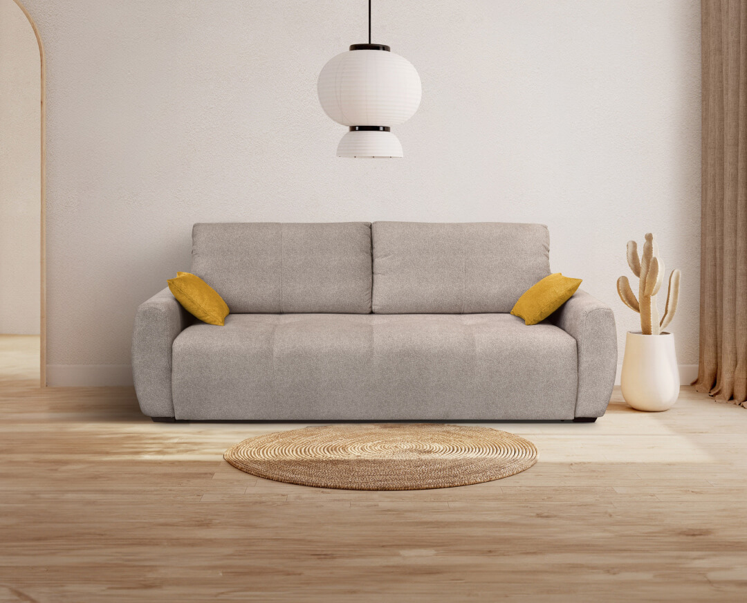 Τριθέσιος καναπές κρεβάτι με ανεξάρτητα ελατήρια και αποθήκευση Monaco μπεζ 246x112x76