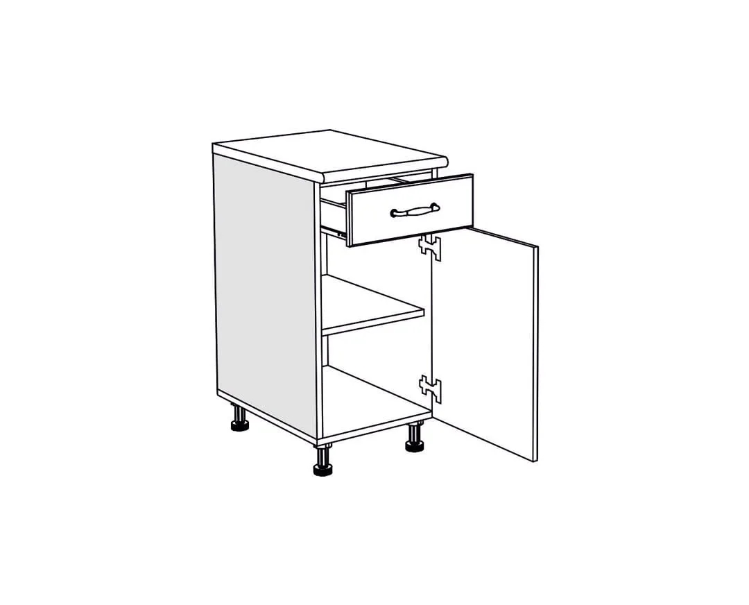Επιδαπέδιο ντουλάπι κουζίνας με 1 συρτάρι, 1 πόρτα δεξιάς ή αριστερής φοράς ανοίγματος κατά τη συναρμολόγηση.