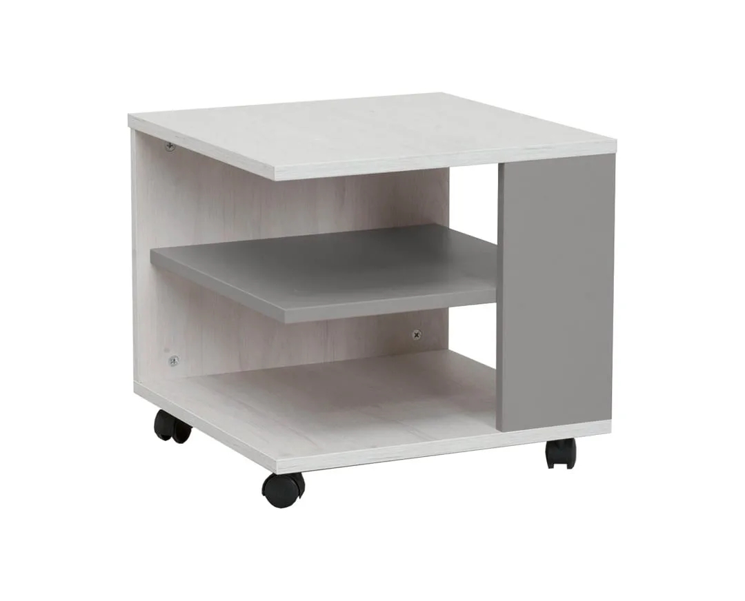 Τροχήλατο τραπεζάκι Numero Λευκός δρυς/ γκρι 45x45x43