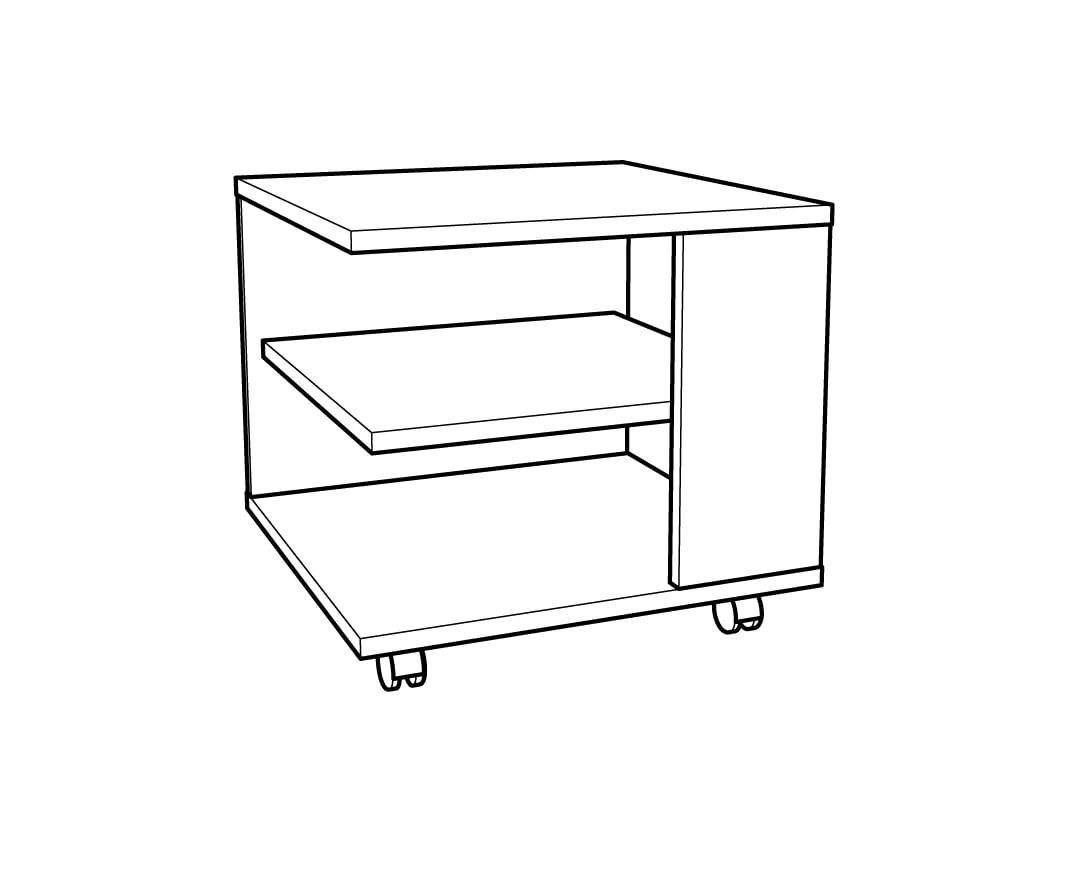 Τροχήλατο τραπεζάκι, τετράγωνο, 2 επιπέδων. Βασικό χρώμα σε μοντέρνο άσπρο δρύς, και λεπτομέρειες σε 5 χαρούμενα χρώματα. Κατασκευάζεται από υψηλής ποιότητας και πυκνότητας μοριοσανίδα (μελαμίνη) πάχους 18 mm, των ευρωπαίων παραγωγών EGGER, KRONOSPAN. Με πιστοποιημένους και εγγυημένους μηχανισμούς των ευρωπαϊκών οίκων INCOLL , HETTICH , TITUS. Χερουλάκια – πόμολα σε σχήμα αριθμών και 5 διαφορετικών χρωμάτων. Τελείωμα ABS σόκορο.