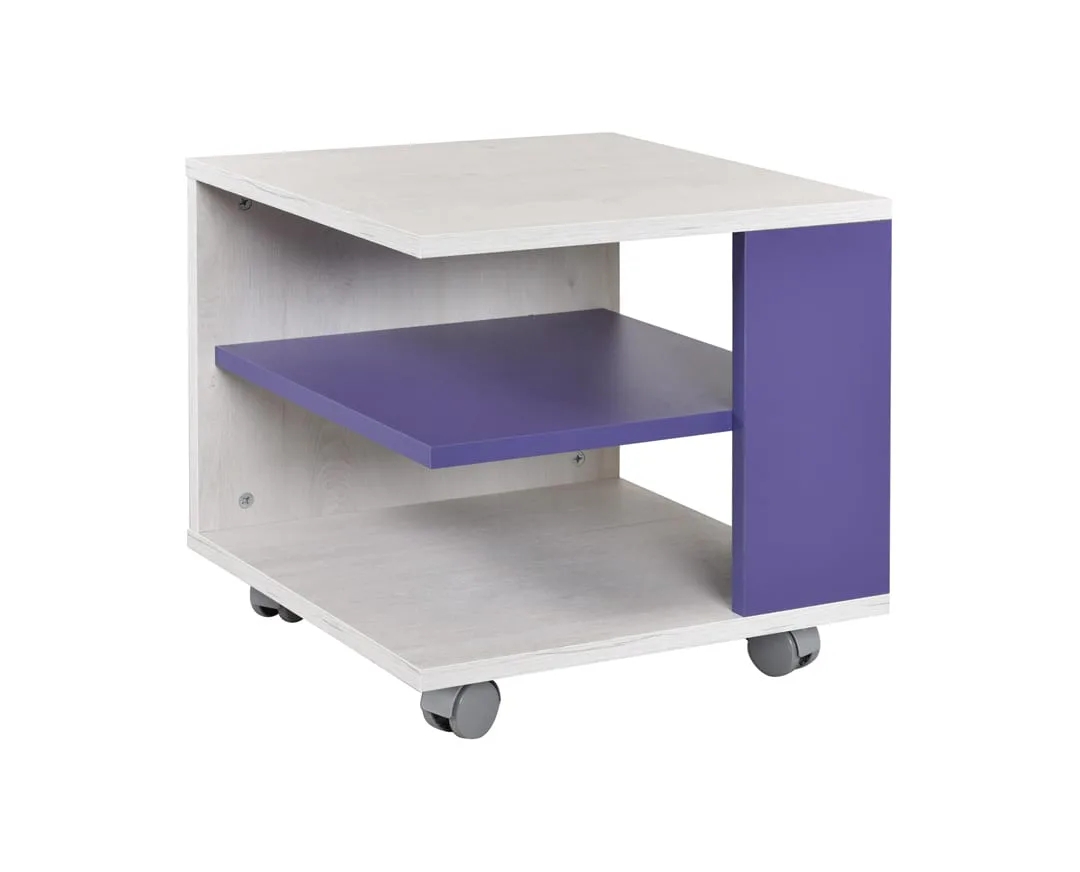 Τροχήλατο τραπεζάκι Numero Λευκός δρυς/ μωβ 45x45x43