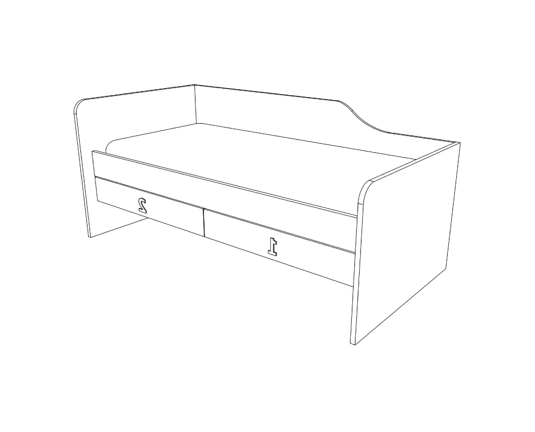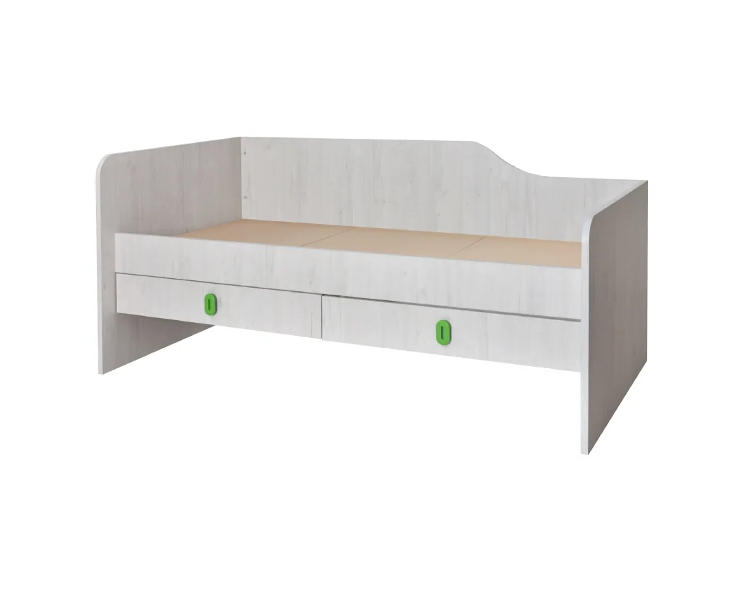 Μονό κρεβάτι με 2 συρτάρια αριστερής φοράς Numero 2F Ασπρος Δρυς/ Πράσινο