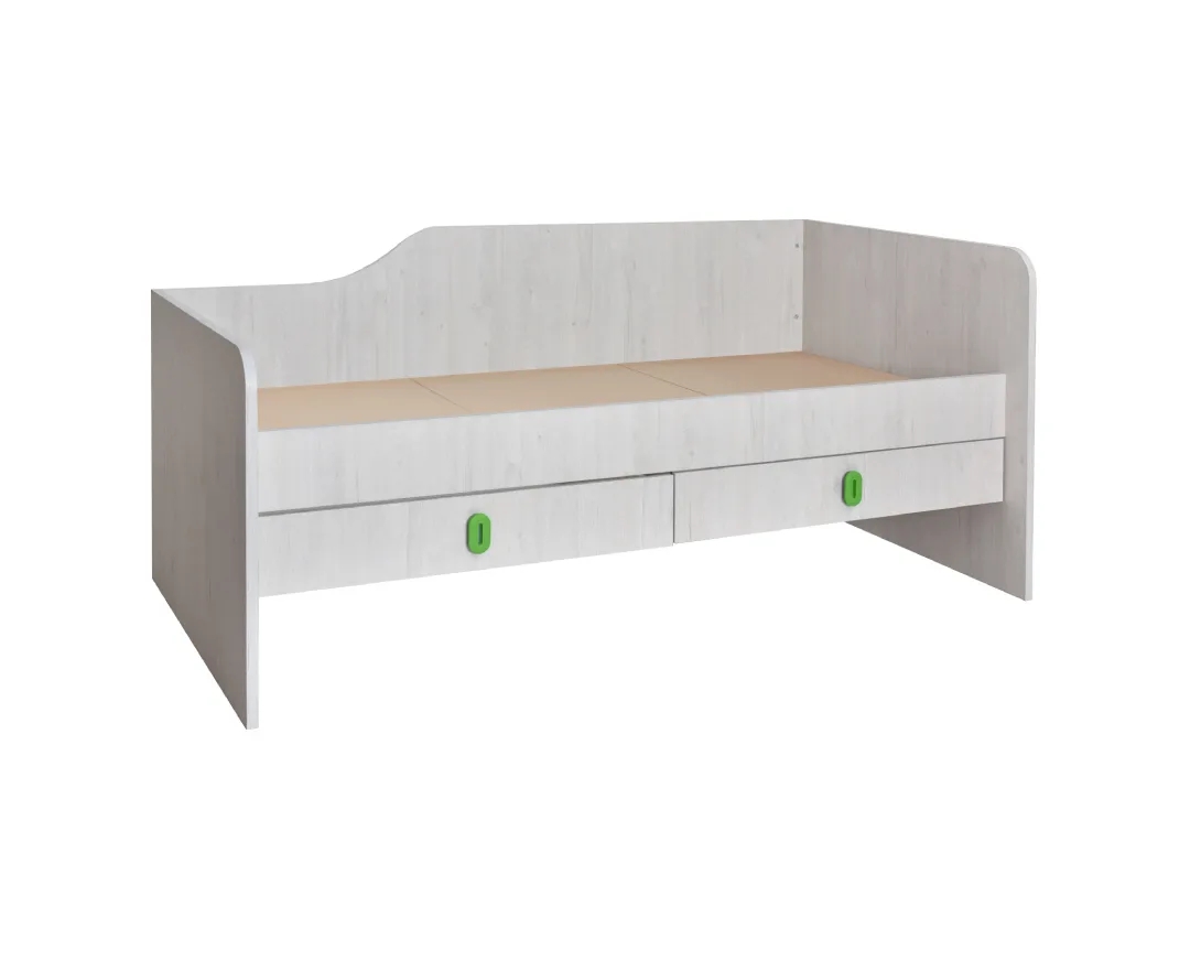 Μονό κρεβάτι με 2 συρτάρια δεξιάς φοράς Numero 2F Ασπρος Δρυς/ Πράσινο