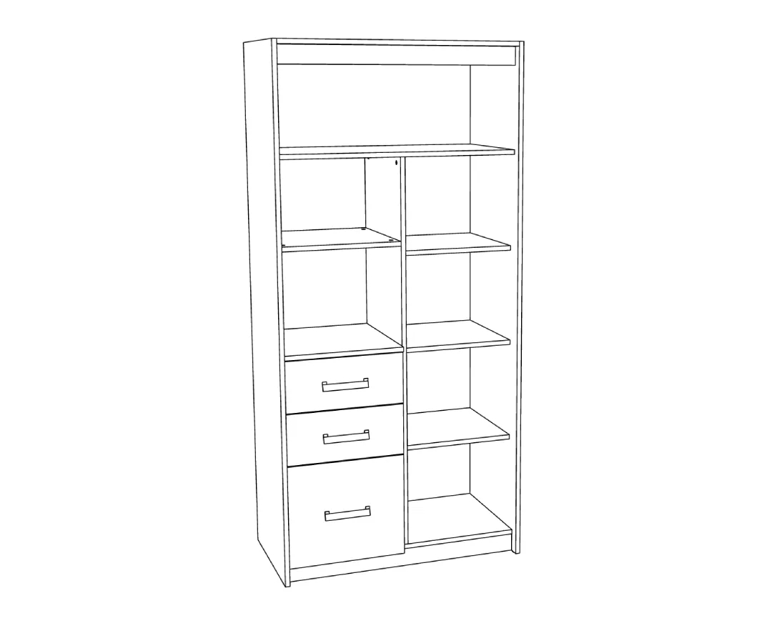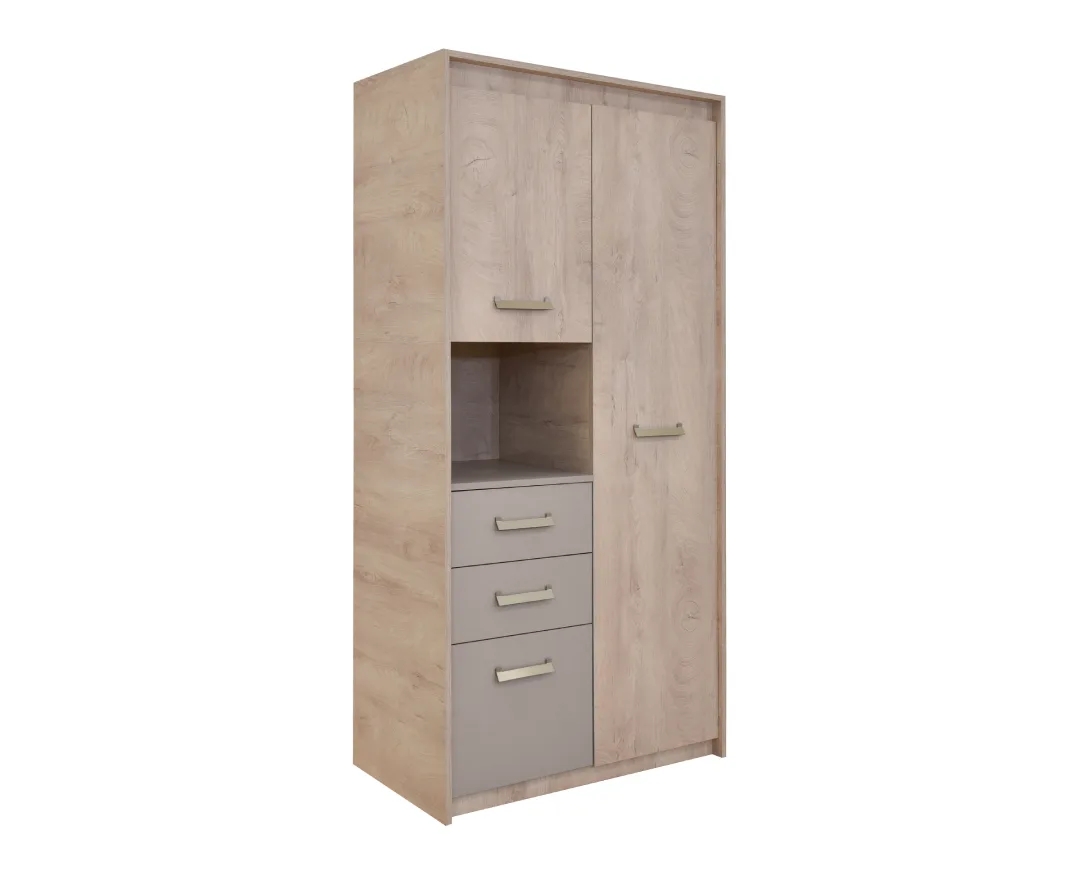 Δίφυλλη ντουλάπα Kinder 2V3F με 3 συρτάρια premium δρυς/ άμμου 96,1x52x203