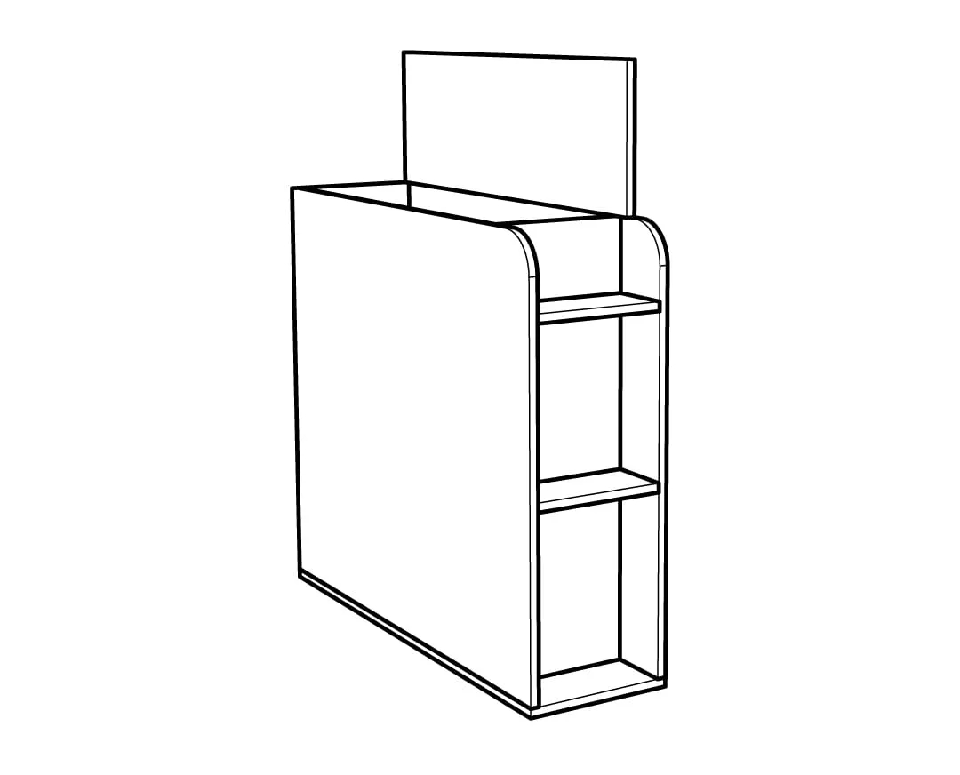 Κουτί αποθήκευσης με πόρτα ανασηκώμενη προς τα επάνω. Βασικό χρώμα σε μοντέρνο άσπρο δρύς, και λεπτομέριες σε 5 χαρούμενα χρώματα. Κατασκευάζεται από υψηλής ποιότητας και πυκνότητας μοριοσανίδα (μελαμίνη) πάχους 18 mm, των ευρωπαίων παραγωγών EGGER, KRONOSPAN. Με πιστοποιημένους και εγγυημένους μηχανισμούς των ευρωπαϊκών οίκων INCOLL , HETTICH , TITUS. Τελείωμα ABS σόκορο.
