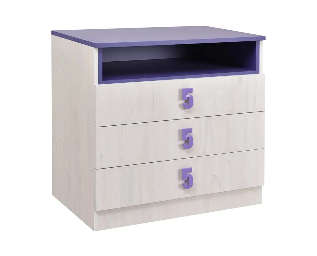 Συρταριέρα Numero 3F Ασπρος Δρυς/Μωβ