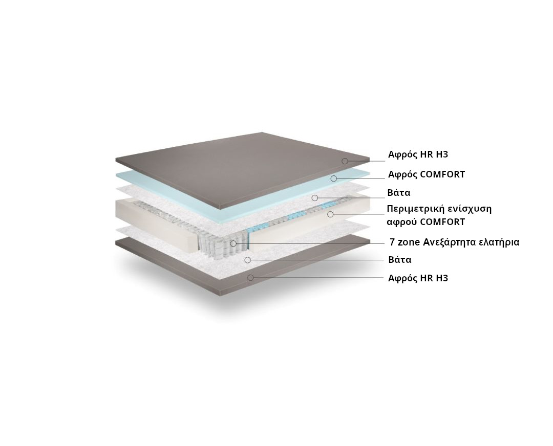 7 zone επταζωνικό στρώμα με ανεξάρτητα ελατήρια AFRODITA NEW.