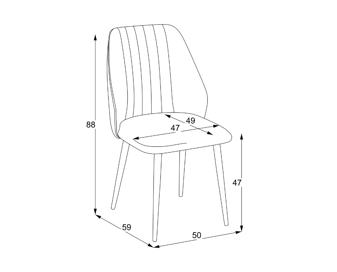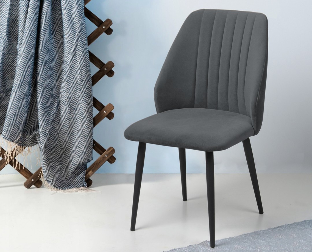 Καρέκλα με μεταλλικό πόδι conic και basic ύφασμα. Χαρίζει μια αίσθηση πολυτέλειας στο χώρο της τραπεζαρίας με άνετο κάθισμα.