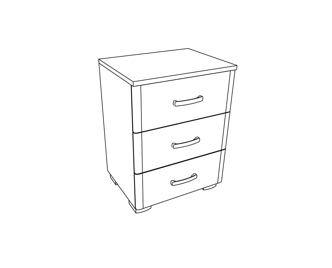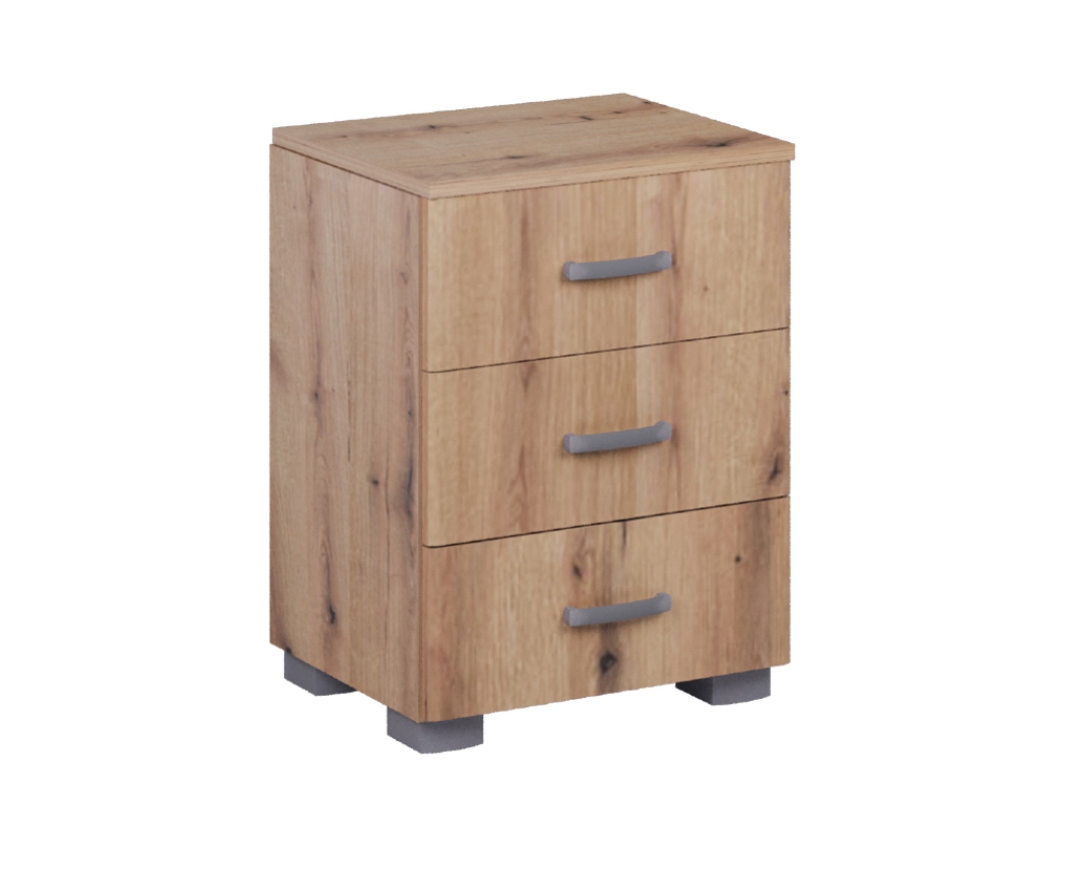 Κομοδίνο Ormaric 3F με 3 συρτάρια και σε 4 χρωματισμούς. Κατασκευάζεται από υψηλής ποιότητας και πυκνότητας μοριοσανίδας (μελαμίνη), πάχους 18 mm, των ευρωπαίων παραγωγών EGGER, KRONOSPAN. Με πιστοποιημένους και εγγυημένους μηχανισμούς των ευρωπαϊκών οίκων INCOLL, HETTICH, TITUS. Μεταλλικά χερουλάκια – πόμολα του ευρωπαϊκού οίκου RUJZDESIGN. Τελείωμα ABS σόκορο, soft forming. Υψηλή αισθητική, άριστη ποιότητα, οικονομική, λειτουργική.