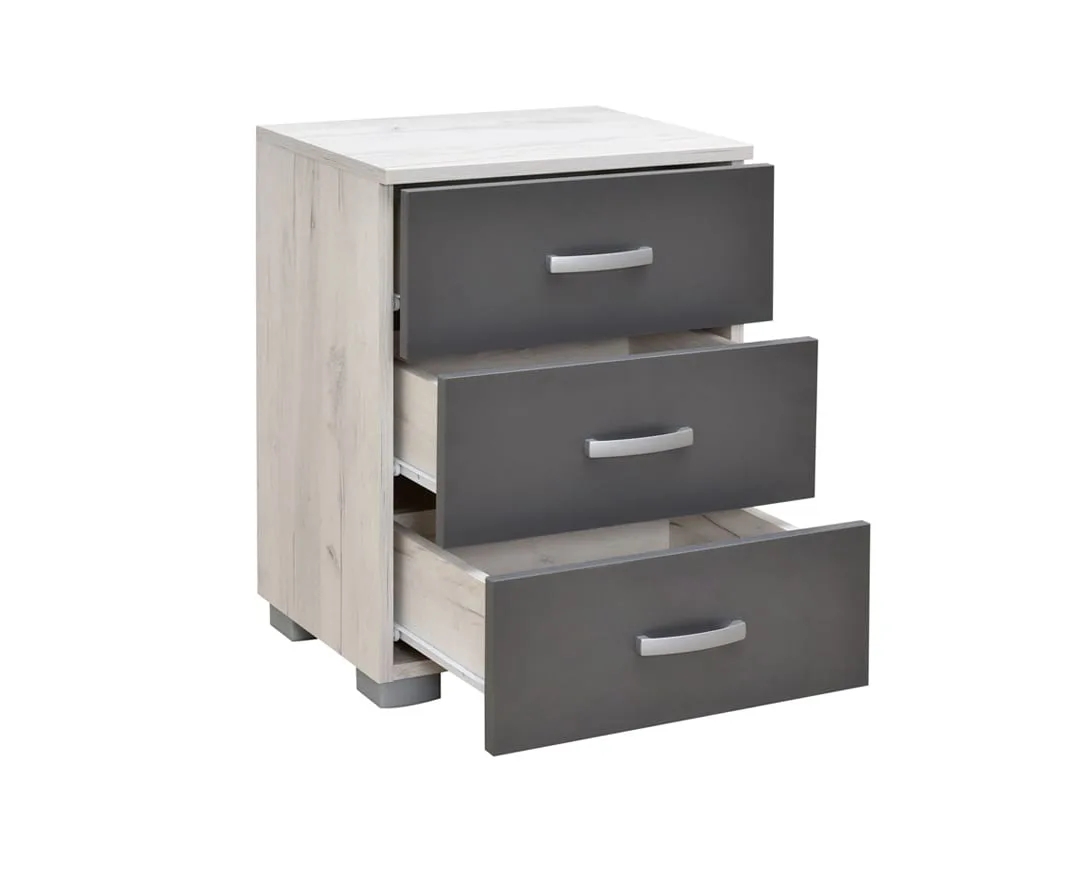 Κομοδίνο με 3 συρτάρια MATIS 3F δρυς πάγου/ ανθρακί 49x38x65