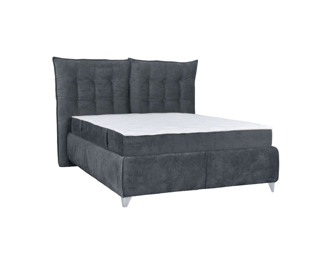 Κρεβάτι με ανακλινόμενο προσκέφαλο που γίνεται μαξιλάρι, αποθήκευση και σομιέ Asterix γκρι 160×200
