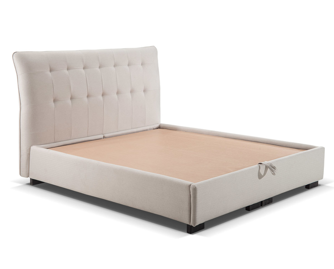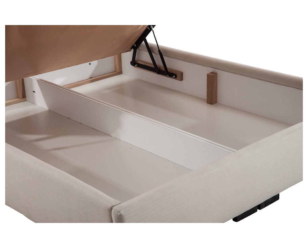 Μοντέρνο κρεβάτι, υψηλής ποιότητας και αισθητικής με αποθηκευτικό χώρο. Περιλαμβάνει σομιέ για όλους τους τύπους στρώματος διάστασης 140*200εκ, ανασηκώμενος με αμορτισέρ με μία απλή κίνηση για πρόσβαση στον αποθηκευτικό χώρο, στον οποίο υπάρχουν τοποθετημένοι 2 αεραγωγοί συνεχής κυκλοφορίας του αέρα. Ο χώρος αποθήκευσης αποτελείται από 2 κουτιά των 70*200εκ για ευκολότερη και σίγουρη μεταφορά. Ποδαράκια από μασίφ ξύλο οξιάς. Το ύψος του κεφαλαριού είναι 125εκ. Επιλέξτε το χρώμα και την υφή του υφάσματος που σας ταιριάζει στο δωμάτιό σας και ξεκουραστείτε καθημερινά. Στην τιμή συμπεριλαμβάνεται και το κόστος υφάσματος.