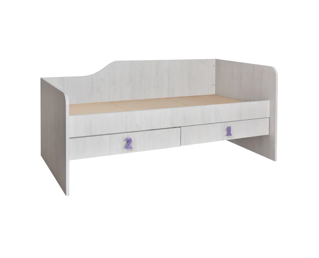 Μονό κρεβάτι με 2 συρτάρια δεξιάς φοράς Numero 2F Ασπρος Δρυς/ Μωβ