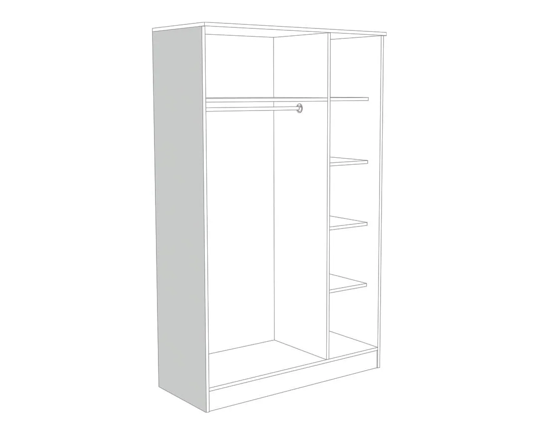 Εχει εσωτερικό πατάρι, τρία ρυθμιζόμενα ράφια και σωλήνα για κρέμαση. Κατασκευάζεται από υψηλής ποιότητας και πυκνότητας μοριοσανίδα ( μελαμίνη ) πάχους 16 mm, των ευρωπαίων παραγωγών EGGER, KRONOSPAN. Με πιστοποιημένους και εγγυημένους μηχανισμούς των ευρωπαϊκών οίκων INCOLL , HETTICH , TITUS. ABS χερουλάκια – πόμολα του ευρωπαϊκού οίκου RUJZDESIGN . Τελείωμα ABS σόκορο.