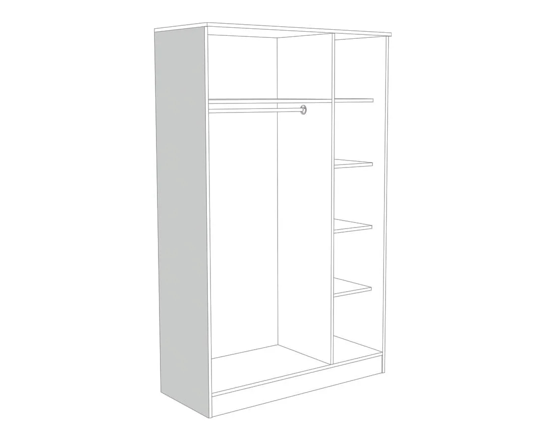 Εχει εσωτερικό πατάρι, τρία ρυθμιζόμενα ράφια και σωλήνα για κρέμαση. Κατασκευάζεται από υψηλής ποιότητας και πυκνότητας μοριοσανίδα ( μελαμίνη ) πάχους 16 mm, των ευρωπαίων παραγωγών EGGER, KRONOSPAN. Με πιστοποιημένους και εγγυημένους μηχανισμούς των ευρωπαϊκών οίκων INCOLL , HETTICH , TITUS. ABS χερουλάκια – πόμολα του ευρωπαϊκού οίκου RUJZDESIGN . Τελείωμα ABS σόκορο.