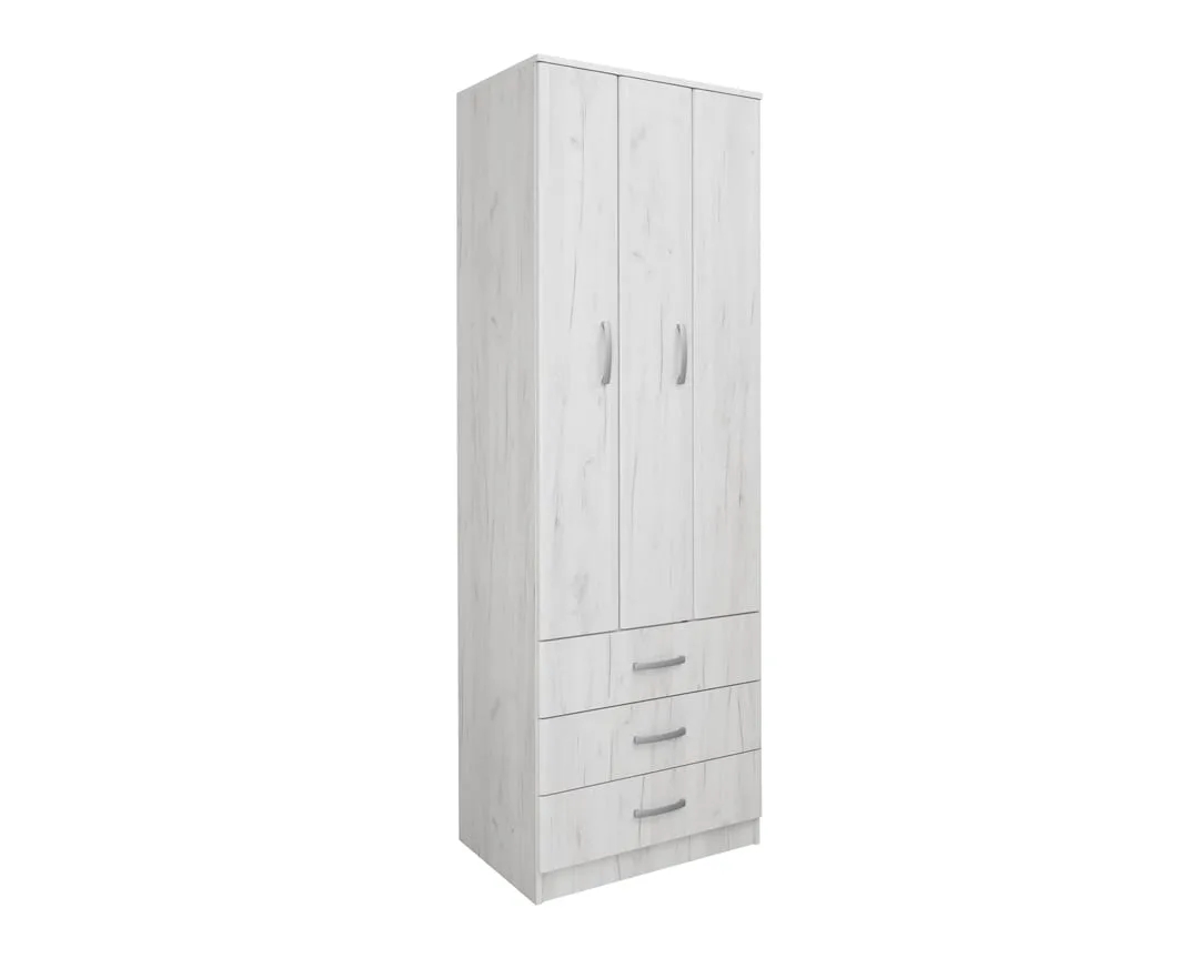Ανοιγόμενη ντουλάπα τύπου φυσούνα με 3 συρτάρια FORTUNA F75 δρυς πάγου 75x52x222
